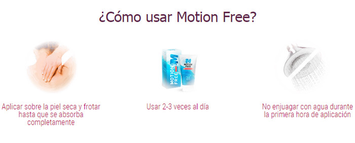Primero, se recomienda enjuagar la zona dolorida con agua y secarla con una toalla. Luego, es necesario exprimir una pequeña cantidad del producto Motion Free en la palma de la mano y frotar bien en el área afectada con movimientos de masaje. No es necesario lavar la composición medicinal. Para potenciar su efecto, el lugar calentado se puede cubrir con un pañuelo o toalla tibia y dejar en este estado durante treinta minutos. Este procedimiento debe realizarse tres veces al día para lograr un efecto curativo rápido. Pero como medida preventiva, esta crema se puede usar para tratar los puntos doloridos una vez al día. El curso de tratamiento es de un mes. Motion Free no tiene efectos secundarios ni contraindicaciones.
